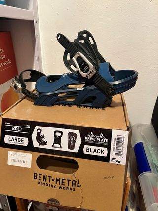 Fijaciones de snowboard Bent Metal Bolt en color azul, talla L. - Modelo FW23. - Flex Control Drive Plate. - Tecnología patentada. - Talla L (MP 280-300).