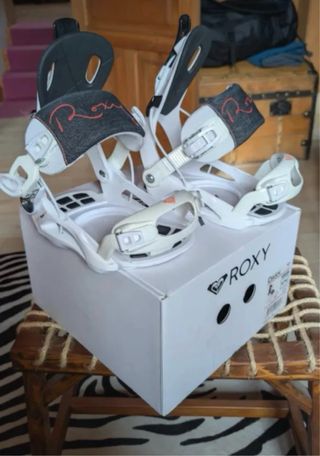 Preciosa tabla de snowboard Rossignol con fijaciones incluidas. - Tabla de color azul claro con detalles gráficos. - Fijaciones blancas ajustables. -Logicamente con marcas de uso nada significativas. - Precio algo negociable.
