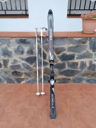 Conjunto de esquís Head con fijaciones y dos bastones de regalo - Esquís Head Cyber. - Fijaciones incluidas. - Dos bastones de esquí Fischer.