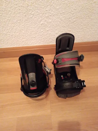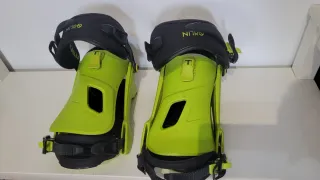 Fijaciones tabla snowboard marca Nitro Rambler. Obvias marcas de uso, pero la funcionalidad está perfecta. Ideales para alguien aprendiendo con la tabla que no quiere gastar muchísimo al inicio