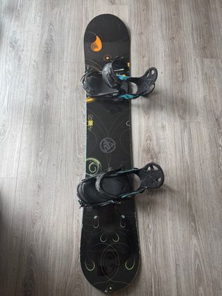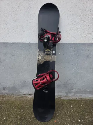 Se vende tabla de snowboard de 145cm, con fijaciones y funda. - Tabla de snowboard de 145cm. - Fijaciones incluidas. - Funda de transporte.