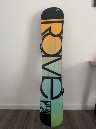 Se vende snowboard completo con fijaciones y funda. - Tabla de snowboard modelo Rome Vinyl. - Fijaciones K2 negras y azules. - Funda de transporte Dakine de regalo. Las fijaciones tienen la parte de tela/espumilla un poco rajada, tal y como se puede apreciar en las fotos, pero son 100% funcionales. De hecho, son muy cómodas porque se pueden abrochar directamente desde atrás metiendo la bota una vez ajustadas las cintas delanteras, lo que es ideal porque ahorra tiempo en los remontes
