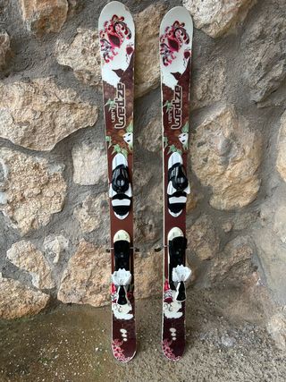 Buen estado. Esquis super polivalentes pista y polvo (100mm de bajo del patin) Fijaciones Salomon 610 ajustables (calzo un 27.5 de botas)