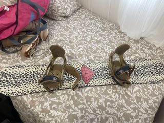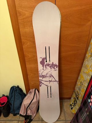 Tabla de snowboard con fijaciones y funda de transporte incluida. Lista para la montaña. 148 de largo y 28 de ancho. - Diseño llamativo en la tabla. - Fijaciones ajustables. - Funda protectora para el transporte.