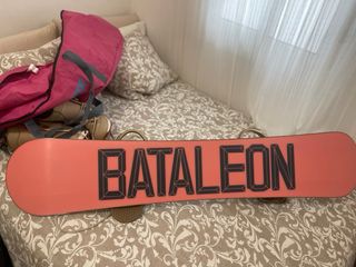 Conjunto completo para snowboard, listo para la montaña. Incluye tabla, botas, fijaciones y funda de transporte. - Tabla marca Bataleon con diseño llamativo talla 147. - Botas cómodas y resistentes marca thirtytwo. - Fijaciones ajustables Burton. - Funda Burton