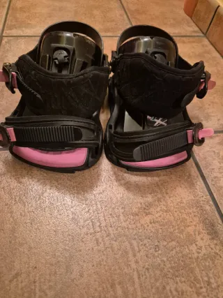 Fijaciones de snowboard Forum para chica, en color negro y rosa. Talla bota 38-39