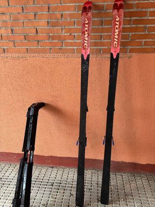 Esquís de pista Atomic con fijaciones incluidas. Incluye el soporte para el coche para transportarlos. - Marca: Atomic - Tipo: Esquís de pista - Incluye fijaciones