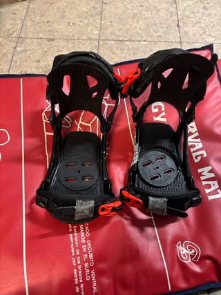 Fijaciones para tabla de snowboard. - Color negro y rojo. - Diseño con logo. - Incluye tornillos y arandelas.