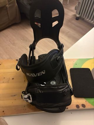 Fijaciones de snowboard Raven Vezi S250series. - Talla M/L. 27cm - Color negro. Se han usado muy poco, están prácticamente como nuevas. La única observación es que la correa de la fijación izquierda presenta un leve desgaste estético en la parte superior (cuero sintético ligeramente descascarado). No afecta en absoluto al ajuste ni al rendimiento.
