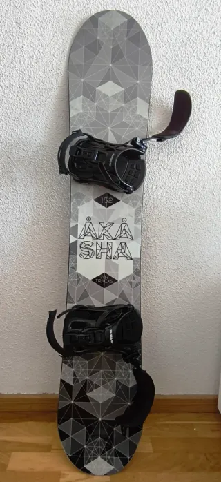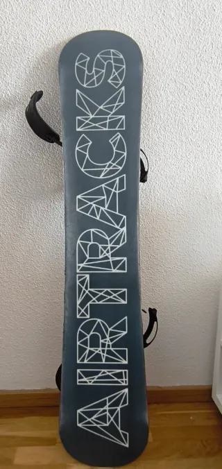 Tabla de snowboard Airtracks con fijaciones y bolsa incluida. La tabla es de 152cm y las fijaciones talla L (bota 41-45). La tabla está prácticamente nueva, ha tenido muy poco uso.