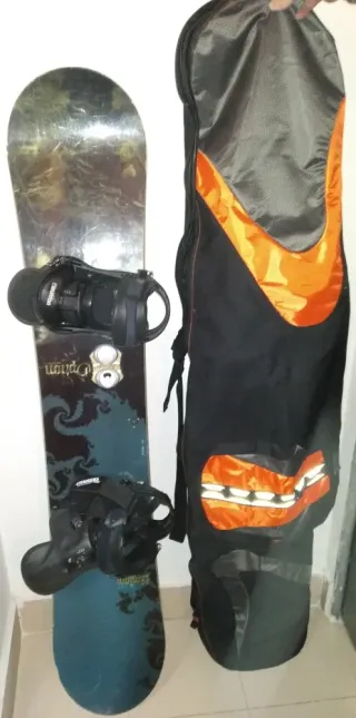 Tabla de snowboard con un diseño llamativo y fijaciones incluidas. Lista para la montaña. - Diseño gráfico en la parte superior. - Fijaciones negras ajustables. Como nueva Medidas de la tabla : 160cm x 30cm La tabla es de la marca Option y las fijaciones de la marca Burton. Incluye las fijaciones y la funda. Para que siva de referencia, la tabla se usó con un 45,5. Se trata de una tabla de gran tamaño, por lo que la dimensión principal supera los 120 cm y se considera producto voluminoso para transporte.