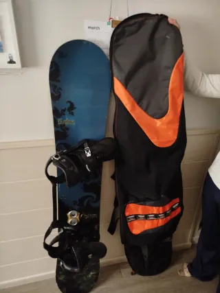 Vendo pack completo de snowboard Burton: – Tabla Burton 158 cm – Fijaciones Burton Mission – Funda Burton con ruedas Material usado pero en buen estado funcional. La tabla tiene rayas y algo de óxido superficial en cantos, normal por el uso, sin golpes estructurales ni core shots. Fijaciones en buen estado, correas y carracas funcionan perfectamente. Ideal para nivel iniciación–intermedio o para quien quiera un equipo completo sin gastar mucho. Se puede ver sin compromiso. Precio negociable.