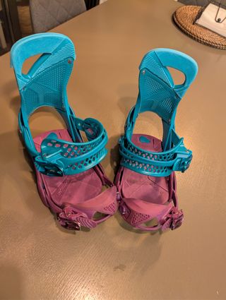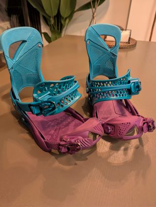 Se venden fijaciones de snowboard Juno Flow para mujer, talla M (en mi caso, un 39). Incluyen los discos y tornillos necesarios para su montaje. Usadas solo una temporada.