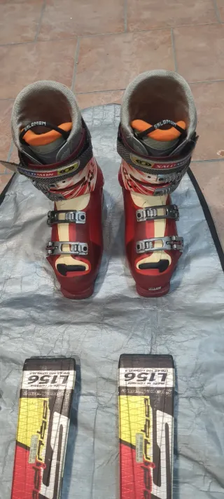 Conjunto de esquí para nieve de la marca Salomón, modelo Slalom Carving SC. - Esquís Salomón L156 SC . - Fijaciones Salomón - Bastones de esquí carbono Salomon. - Botas de esquí Salomon X Wave. - Casco Salomón. - Gafas Oakley. - Único propietario