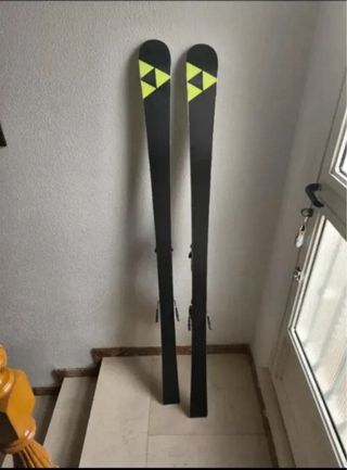 Esquís de la marca Fischer, modelo Aircarbon 175cm. Gama alta. Ideal para dentro y fiera de pista. Cantos y cera hechos, listos para disfrutar. - Longitud de 175 cm. - Diseño en negro con detalles en amarillo neón. - Fijaciones fisher race track, gama alta. - Bolsa de transporte incluida.