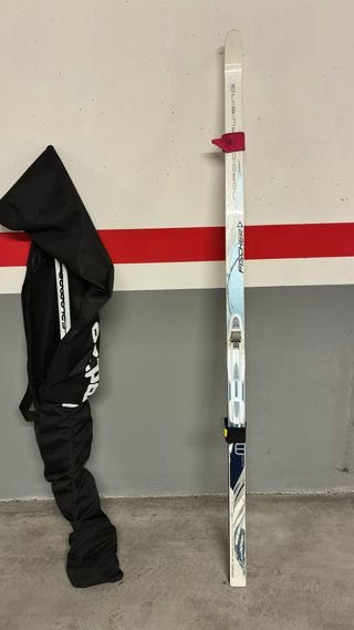 Pack de esquí de fondo FISHER y y bolsa de transporte. - Esquís de estilo clásico. - Incluye fijaciones NNN - 174cm (son mas anchos que los clásicos, son de cross country). Son para 170cm de altura - Encerados a principio de temporada. - Escamas algo gastadas y suela y cantos con alguna raya.