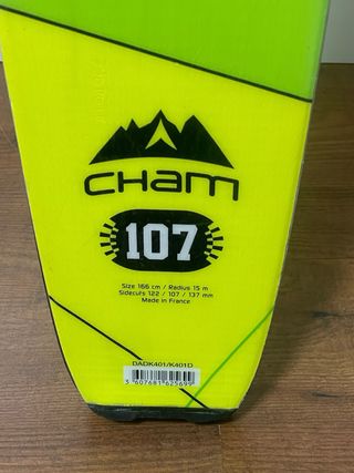 Esquís Dynastar Cham 107 en color verde y amarillo. - Esquís ideales para fuera pista - Modelo Dynastar Cham 107. Talla 166 cm Dimensiones 122/107/137 Radio giro 15 Fijacion Rossignol DUAL 107 Recien encerados y hechos cantos