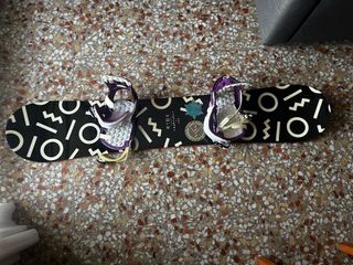 Tabla de snowboard never summer Pandora blanda 140 cm con fijaciones FLOW talla S. - Diseño espectacular con estampado animal print y detalles en morado y verde. - Se incluyen botas BURTON talla 37 y la funda de viaje de REGALO 🎁. - Tabla con uso pero muy bien conservada. - Recogida en persona