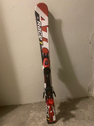 Esquís Atomic Race 7 Junior de 100.5 cm. En buen estado - Diseño deportivo en blanco, rojo y negro. - Fijaciones atomic incluidas. Hago envíos. No se rebajan. Recogiéndolos en Biescas los dejo por 45€