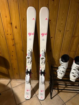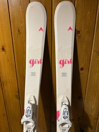 Esquís para niña de la marca Dynastar, con una longitud de 128 cm. Diseñados para jóvenes esquiadoras. - Modelo Girl. - Fijaciones incluidas.