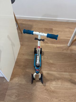 Patinete infantil de tres ruedas de la marca Roll Run. - Color azul y blanco. - Puños de goma para un mejor agarre. - Plataforma para los pies. precio negociable