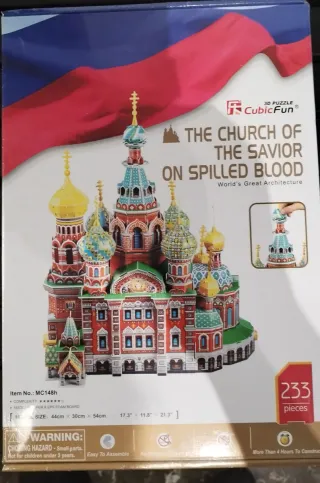 Puzzle 3D de la Iglesia del Salvador sobre la Sangre Derramada, World's Great Architecture. - Modelo: MC148h - Número de piezas: 233 - Material: Papel y tablero de espuma EPS - Tamaño del modelo: 44cm x 30cm x 54cm - Fácil de montar.