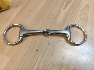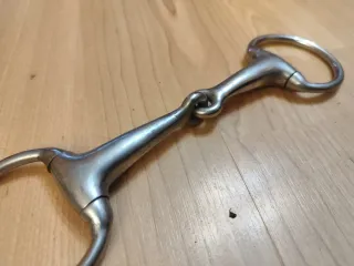 Filete de caballo de metal plateado, tipo oliva. Es un accesorio para equitación. - Material: Metal. {H39}
