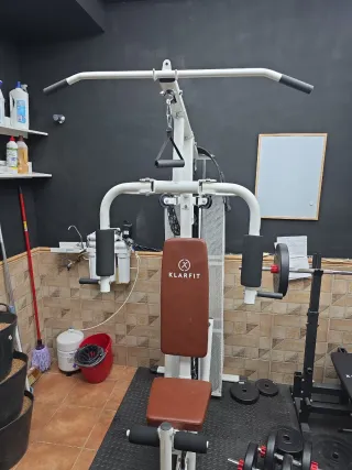 Completo set de gimnasio para entrenar en casa. Ideal para diversas rutinas de ejercicio. Puedes trabajar todos los músculos con este set, incluido piernas. El set esta compuesto por máquina de poleas multinacional. Cuerpo para pres banca con varios grados de inclinación. Dos cuerpos que se acoplan al pres de banca para hacer bíceps y piernas. Bicicleta de spining. Set de discos y mancuernas.