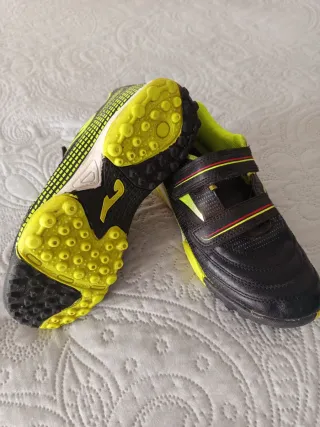 Zapatillas deportivas para niño en talla 35. - Diseño en color negro con detalles en verde lima. - Cierre de velcro para un ajuste fácil. - Suela multi tacos para césped artificial o tierra.