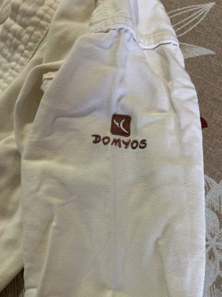 Kimono blanco de la marca Domyos. - Cierre con cintas. - Tejido resistente. -Talla 110 cm.