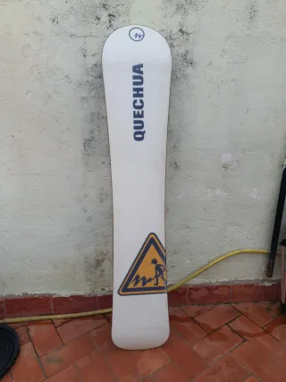 Tabla de snowboard de la marca Quechua, ideal para disfrutar de la montaña. Incluye funda para su transporte y protección. Tiene años pero si eres principiante y quieres una tabla pa empezar y meterle caña te irá perfe. 164 cm altura Radio 9,0/8,0 m