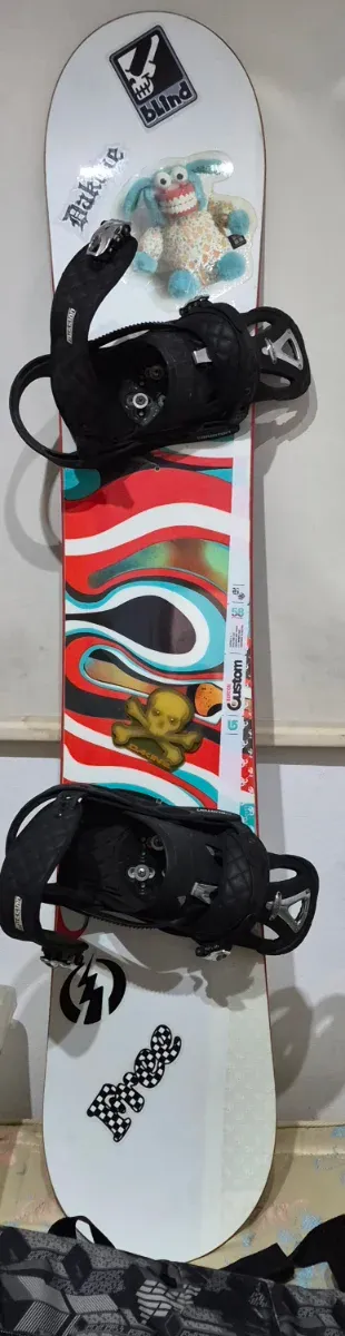 Tabla con fijaciones Burton. Una tiene una pequeña raja de estar guardada. 156 largo 30 ancho Gráfico: Presenta un diseño distintivo que incluye un oso de peluche de juguete y el logotipo de la marca de skate "Blind" en la punta superior. Tipo de tabla: Conocida por ser una tabla versátil para toda la montaña (all-mountain), adecuada tanto para freeride como para freestyle. En el momento de su lanzamiento, incorporaba tecnologías avanzadas de Burton, como la base sinterizada WFO para mayor velocidad y durabilidad. Construcción: Utilizaba el núcleo SuperFly II y la tecnología Carbon I-Beam para un mejor pop y respuesta. .