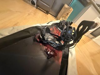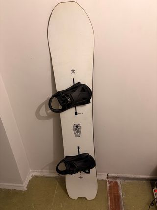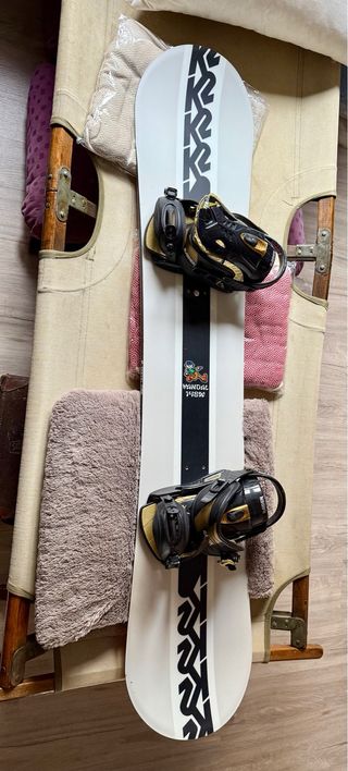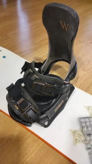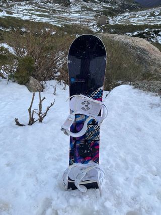 Tabla de snowboard Hammer de 148 cm. Le hicimos el mantenimiento en decathlon el año pasado y desde entonces hemos subido una sola vez a la nieve. Las fijaciones (Rome SDS) destiñen.