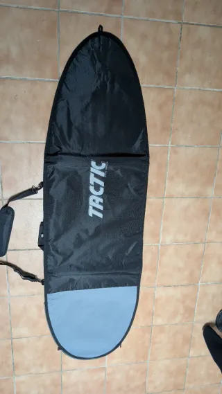 Funda para tabla de surf Tactic de 6'10 y 6'7. Oportunidad! Vendo funda para tabla de surf de la marca Tactic, totalmente nueva, nunca se ha llegado a usar (se entrega con su embalaje original). Es una funda de alta calidad, perfecta para proteger tu tabla en el día a día o en viajes en coche. - Color plateado. - Cierre con cremallera. - Correa ajustable para el hombro.