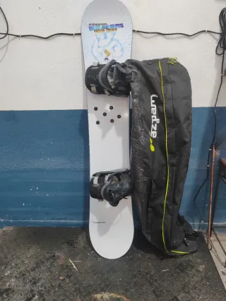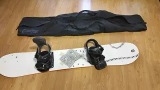 Conjunto completo para snowboard que incluye tabla, botas y funda. - Tabla de snowboard con fijaciones 148 - Botas de snowboard 36 - Funda de transporte para equipo de snowboard