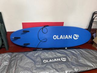 Tabla de surf OLAIAN de color azul, ideal para quienes se inician en este deporte. - Diseño para principiantes. - Incluye tres quillas. - Correa de surf. - Funda de transporte OLAIAN. Medidas 220x64x15 cm