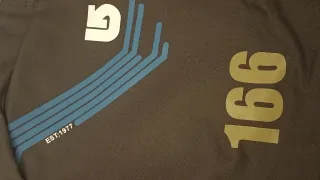 Funda para tabla de snowboard de la marca Burton. - Color marrón oscuro. - Diseño con detalles en rojo, azul y blanco. - Número 166 visible en un lateral. - Asas de transporte y correa ajustable.