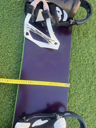 Se vende tabla de snowboard de 145cm, con fijaciones y funda. - Tabla de snowboard de 145cm. - Fijaciones incluidas. - Funda de transporte.