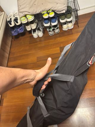 Funda para tabla de snowboard con ruedas, ideal para transportar tu equipo de forma cómoda. Con cuatro aperturas tres por arriba y otra más por debajo. Muy amplia - Color gris. - Asas de transporte. - Cremallera completa.