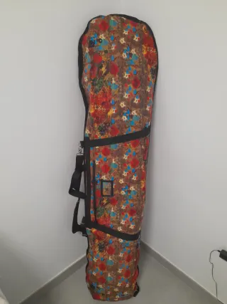 Funda con un diseño colorido y llamativo, ideal para transportar tu tabla de snowboard. NUEVA. 168cm - Estampado floral multicolor. - Cierre con correas. - Asa de transporte.