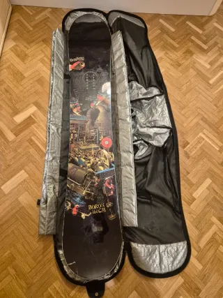 Funda para tabla de snowboard de la marca Burton. - Color gris y negro. - Logo de Burton en el centro. - Número 166 en el lateral. -botas n•43