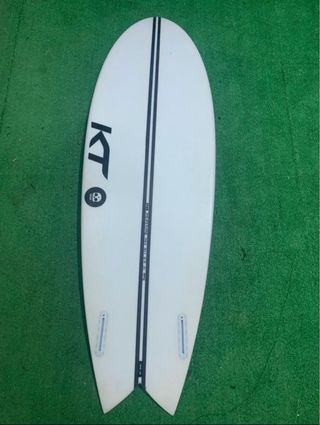 Tabla de surf con diseño twin fin. - Color blanco. - Modelo traveller, en perfecto estado. 5 baños. - Shaper KT - 5,8” 31L - Tabla casi nueva - Se vende con quillas. - Opción de funda a parte +30€