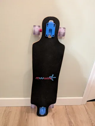 No ha salido de casa. En perfecto estado. Longboard de 9 capas de madera de arce de alta calidad, ruedas LED sin batería (tecnología dinamo), tabla de diseño de 83 x 21 cm, recortado, forma cóncava, cinta antideslizante con logotipo impreso, montaje de eje superior de 14 cm, FOX de aluminio lacado, ruedas de poliuretano fundido de 60 x 45 mm, rodamientos ABEC 7 78A de carbono. Máx. peso del usuario: 100 kg Color: multicolor Departamento: unisex, juvenil Peso del paquete: 12 kg