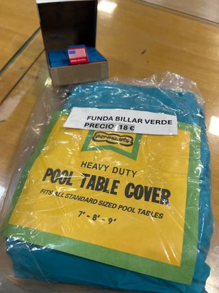 1 Funda para mesa de billar ajustable 7’ 8’ 9’ pies y 1 caja de tiza Master Azul. - Funda para mesa de billar Heavy Duty Pool Table Cover. - 1 Caja de tiza azul Master. 12 tizas azules - La funda es apta para mesas de billar de campo de juego 2x1 hasta 2,54x1,27. - La caja de tizas es original, bandera americana. - Precio funda billar: 18€ y caja de tiza 10€. Se vende el conjunto. - Estos productos nunca se ha usado.
