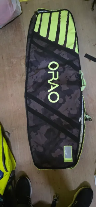 Funda de protección para tabla de kitesurf twintip de 140 cm. Diseño camuflaje con detalles en verde lima. - Cierre de cremallera. - Asas de transporte. - Compartimento para etiqueta.