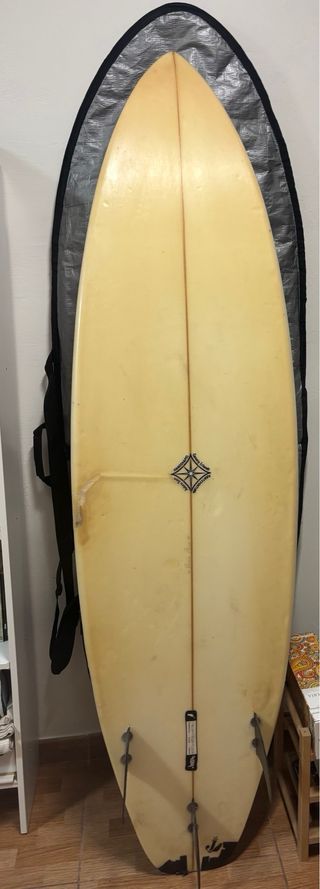 Tabla de surf usada de la marca Full&Cas. Está en buenas condiciones, con algunas abolladuras por golpe y una pequeña grieta en la cola. Incluye 3 quillas FCSIII. Perfecta para principiantes o para surfear en olas pequeñas. Funda Slab 6'6" incluida.
