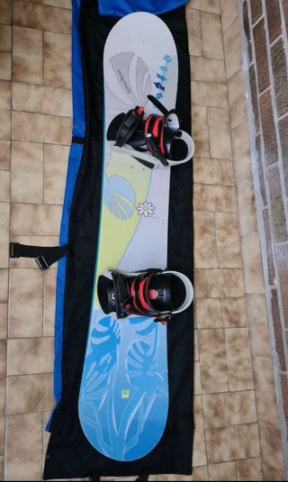 Tabla de snowboard. - Diseño moderno y funcional. - Tiene funda - Sujeción para las botas Mide 1,5 m de largo