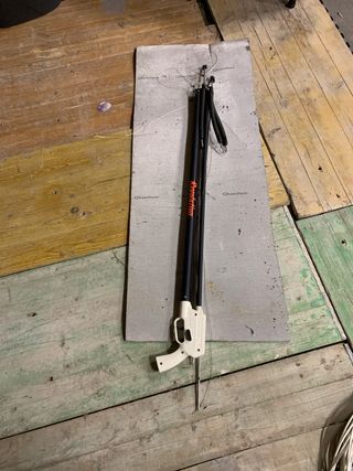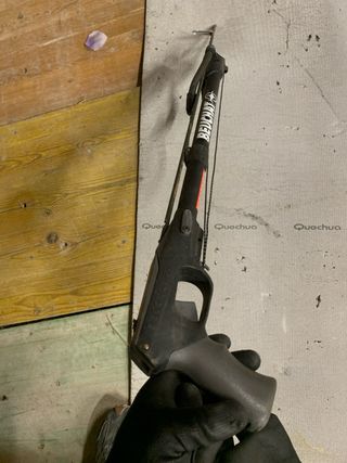 Fusil de pesca submarina en perfecto estado, nunca ha sido utilizado. Solo se ha disparado dos veces. - Color negro y blanco. - Incluye varilla y gomas.