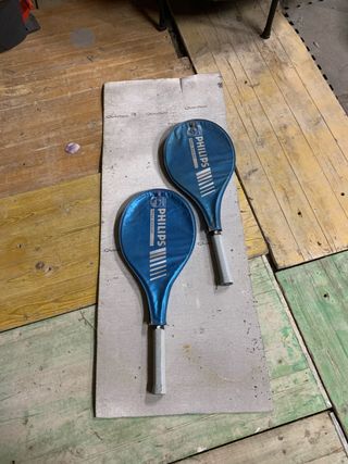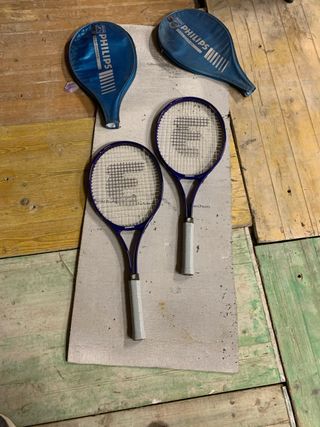 Se venden dos raquetas de tenis de la marca Philips. Son de color azul y tienen un diseño clásico. - Incluye dos raquetas. - Color azul.