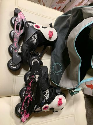 Patines en línea ajustables de la marca Oxelo, ideales para iniciarse en el patinaje. - Talla regulable de la 30 a la 32. - Dispongo de dos pares